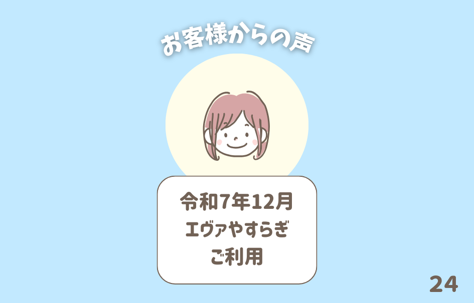 実際に当社をご利用いただいたお客様からの声をご紹介いたします! 令和7年12月 エヴァやすらぎご利用 新庄市X様 アンケート本文 『大変お世話になりました。担当のN様には丁寧…