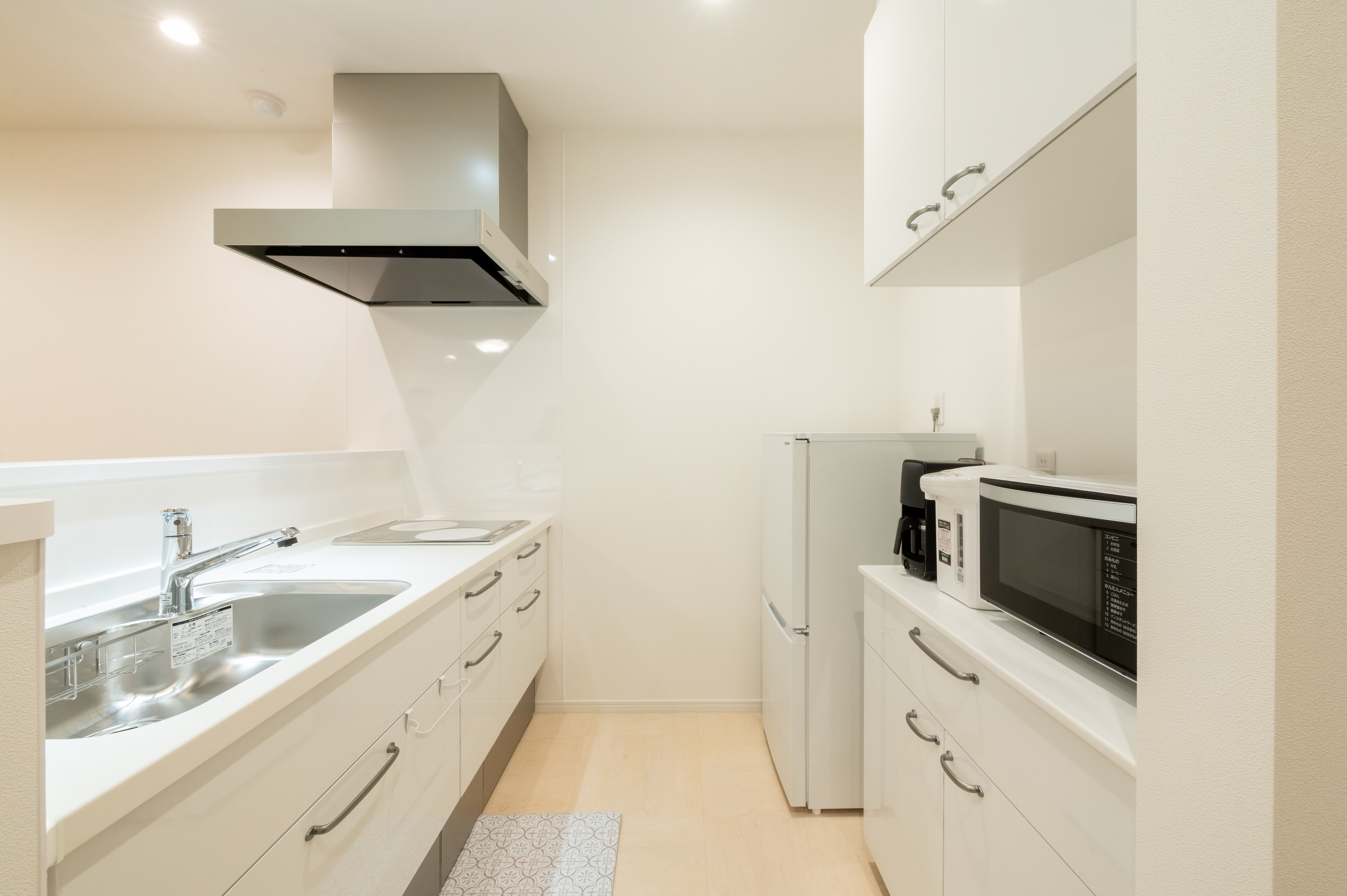 コーヒーやお茶をいつでも自由にお出しできるようキッチンスペースも完備しました。